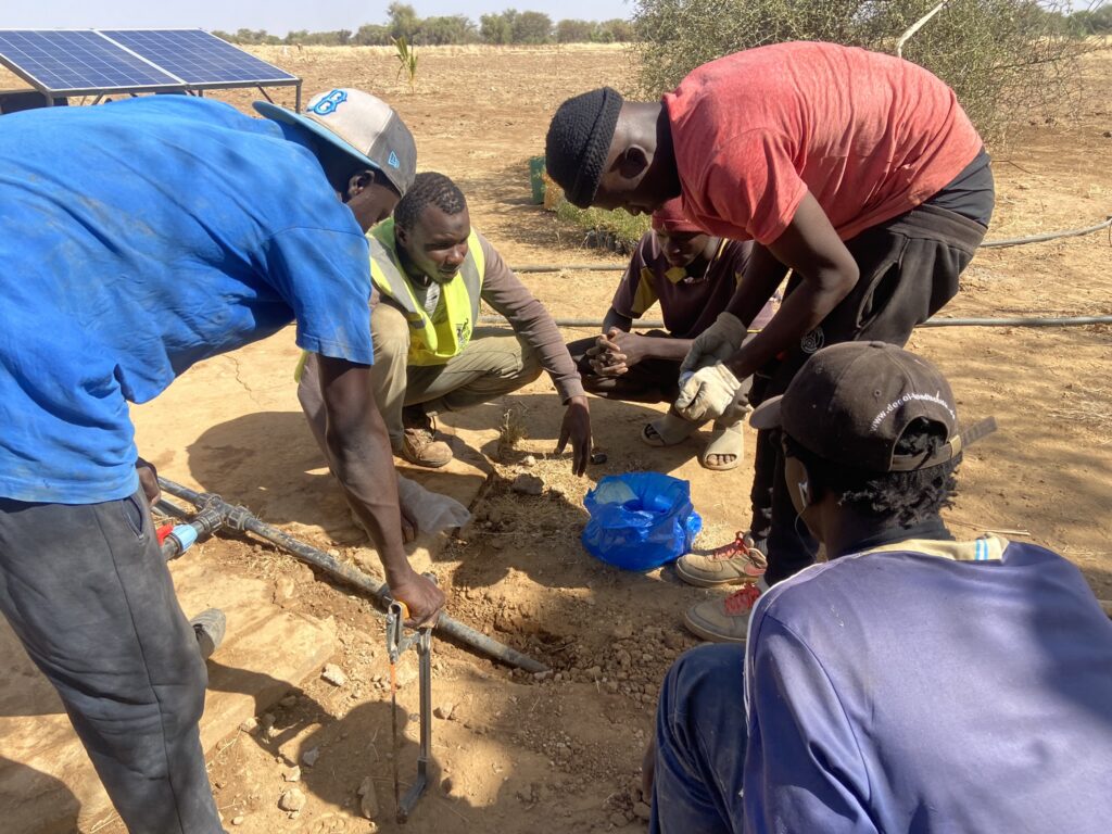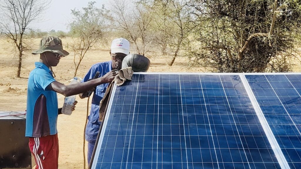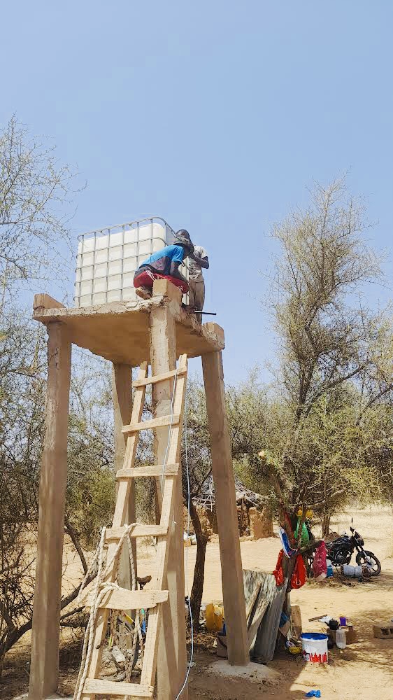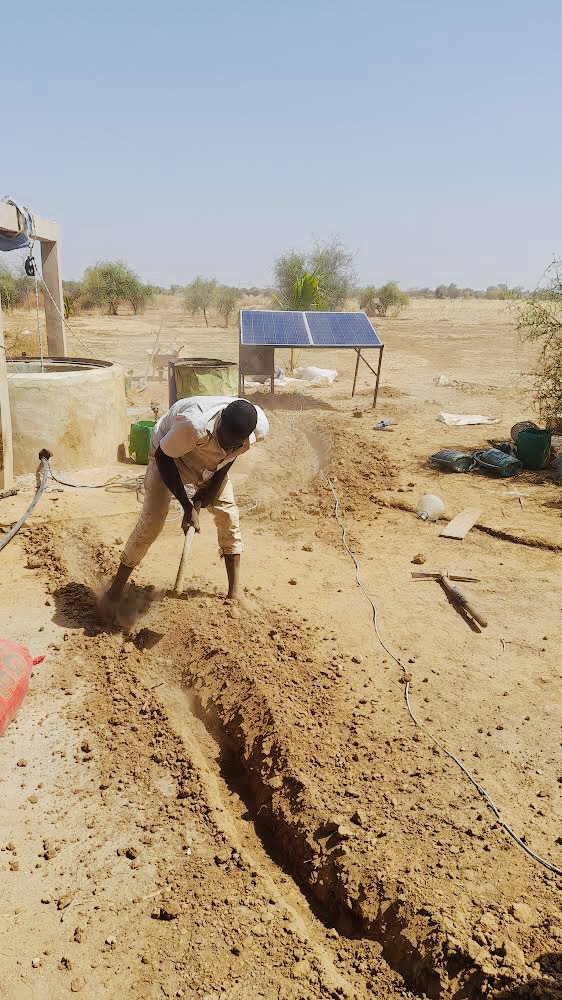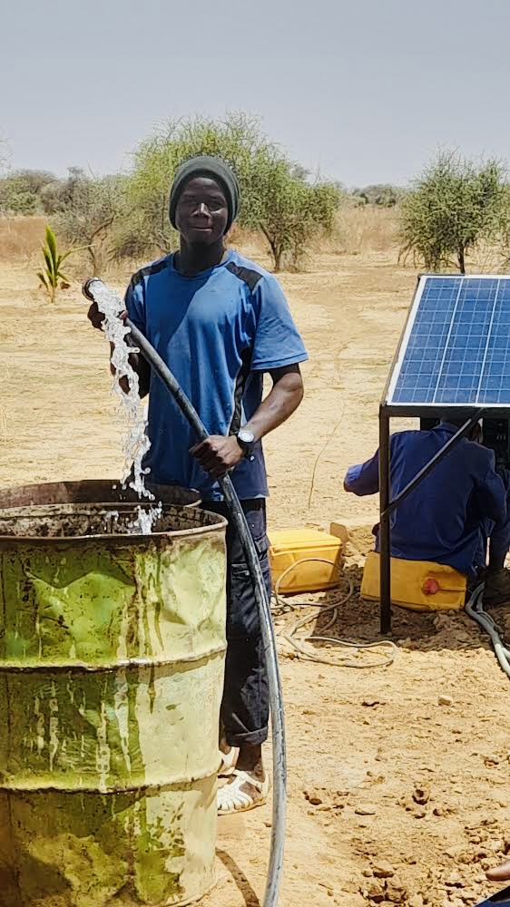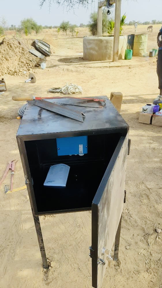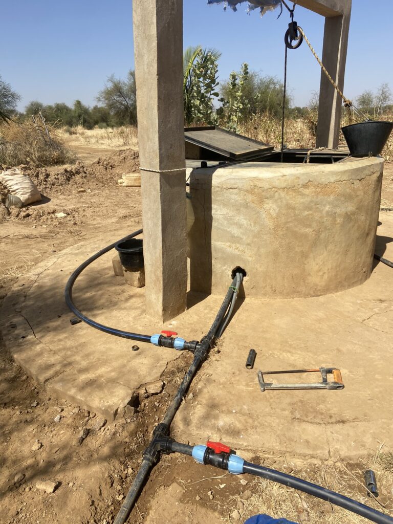 La pompe solaire fonctionnelle depuis mai 2023 nous apporte une grande aide, puisque nous devions puiser en tirant les seaux à la main pour arroser tous nos arbres et cultures. Installation financée par l’association Entraide Étoile.